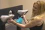 | Slave Tania, wearing her cute dress and white knee socks, is being punished. Mistress Chloe locks her in the stocks for some tickle treatment. She uses her fingernails and feathers to punish Tania’s toes while she giggles and squirms with embarrassment. To really make the lesson sink in, Mistress Chloe tells Tania to carefully remove her thigh high leather boots, only to reveal some hot and sweaty knee socks! Tania is made to smell their heavenly aroma and kiss them to Mistress Chloe’s satisfaction. 30 min. |